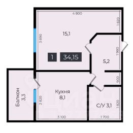 34 м2
