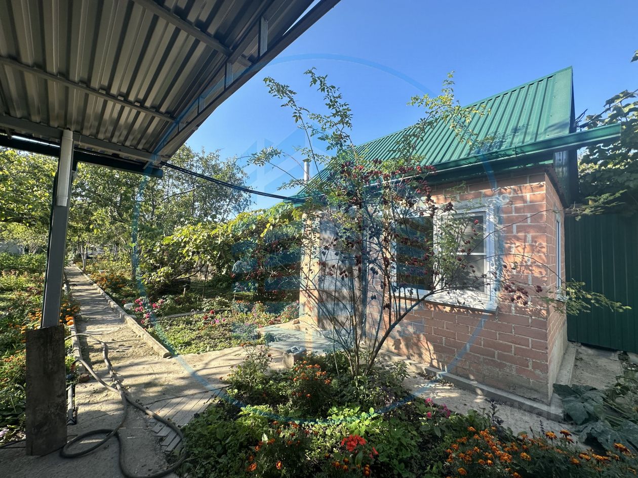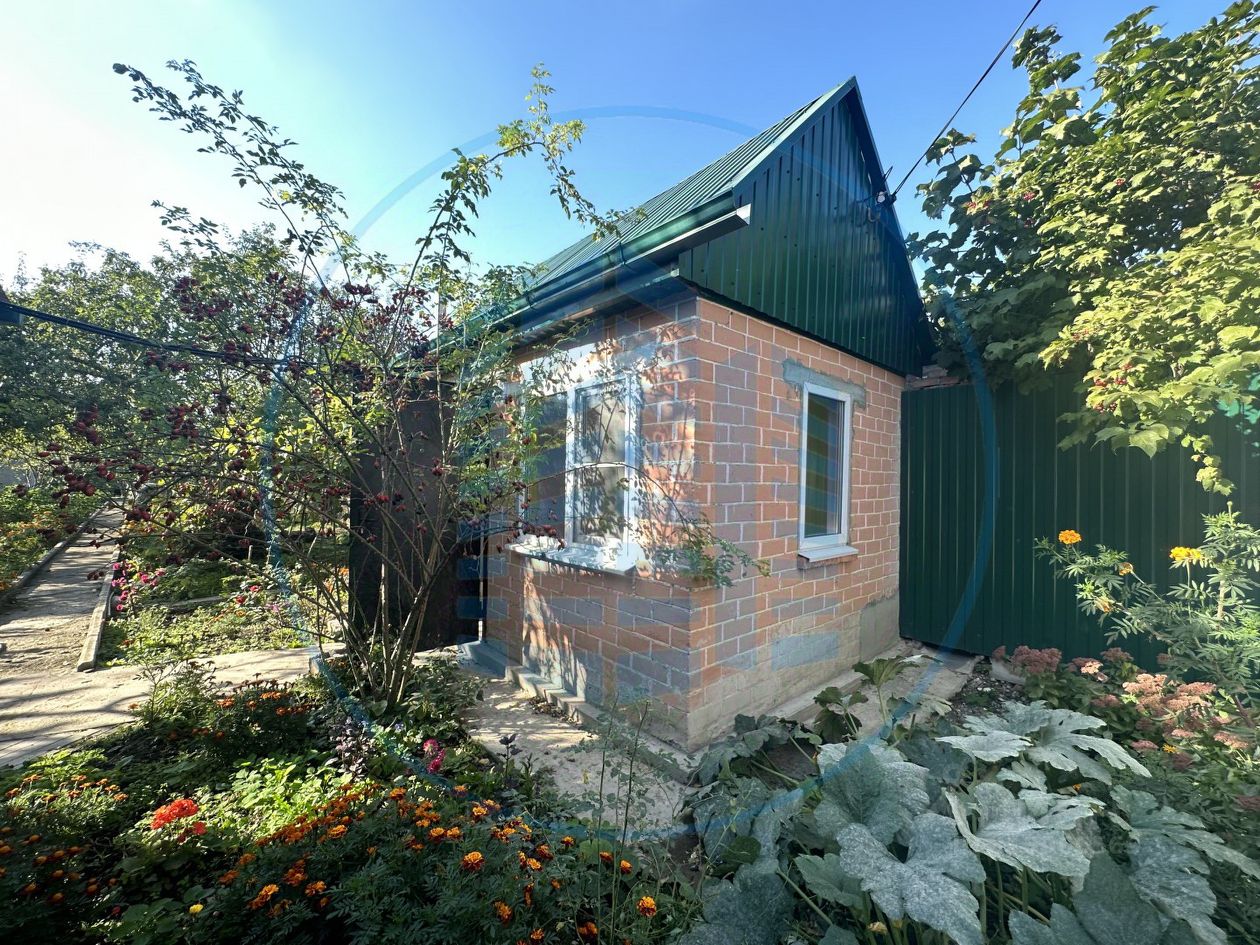 Кирпичный дачный домик на ухоженном участке.