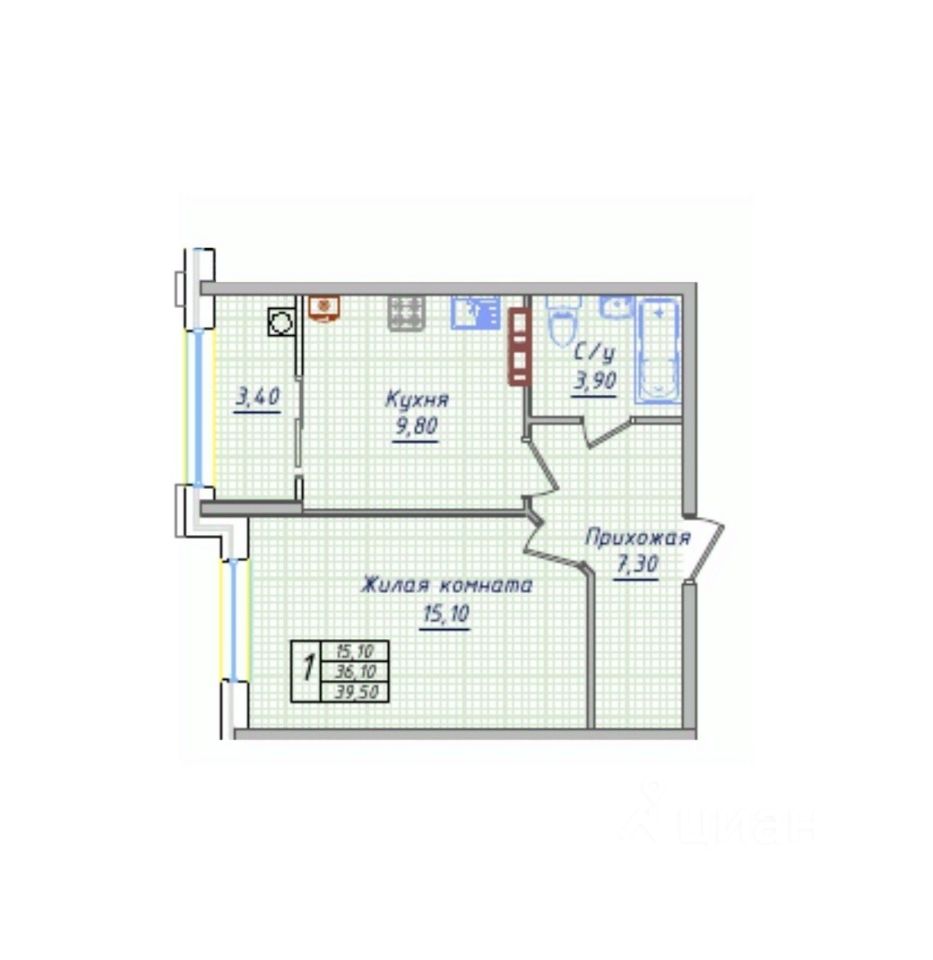 Общая площадь39,5 м2