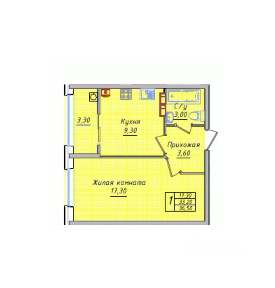 Общая площадь36,5 м2