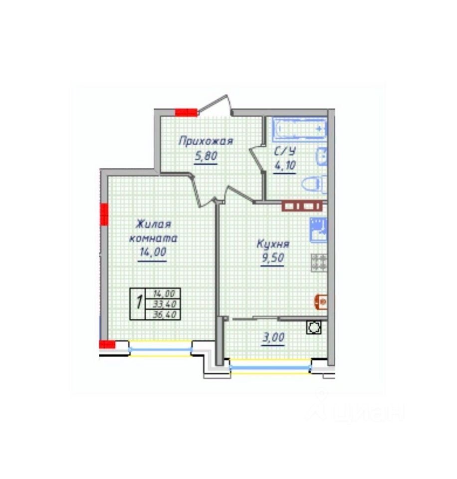 Общая площадь36,4 м2