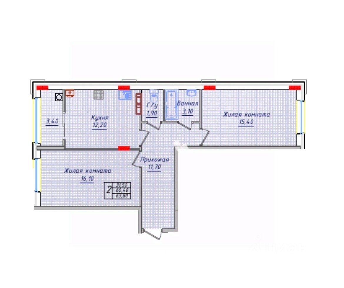 Общая площадь63,8 м2